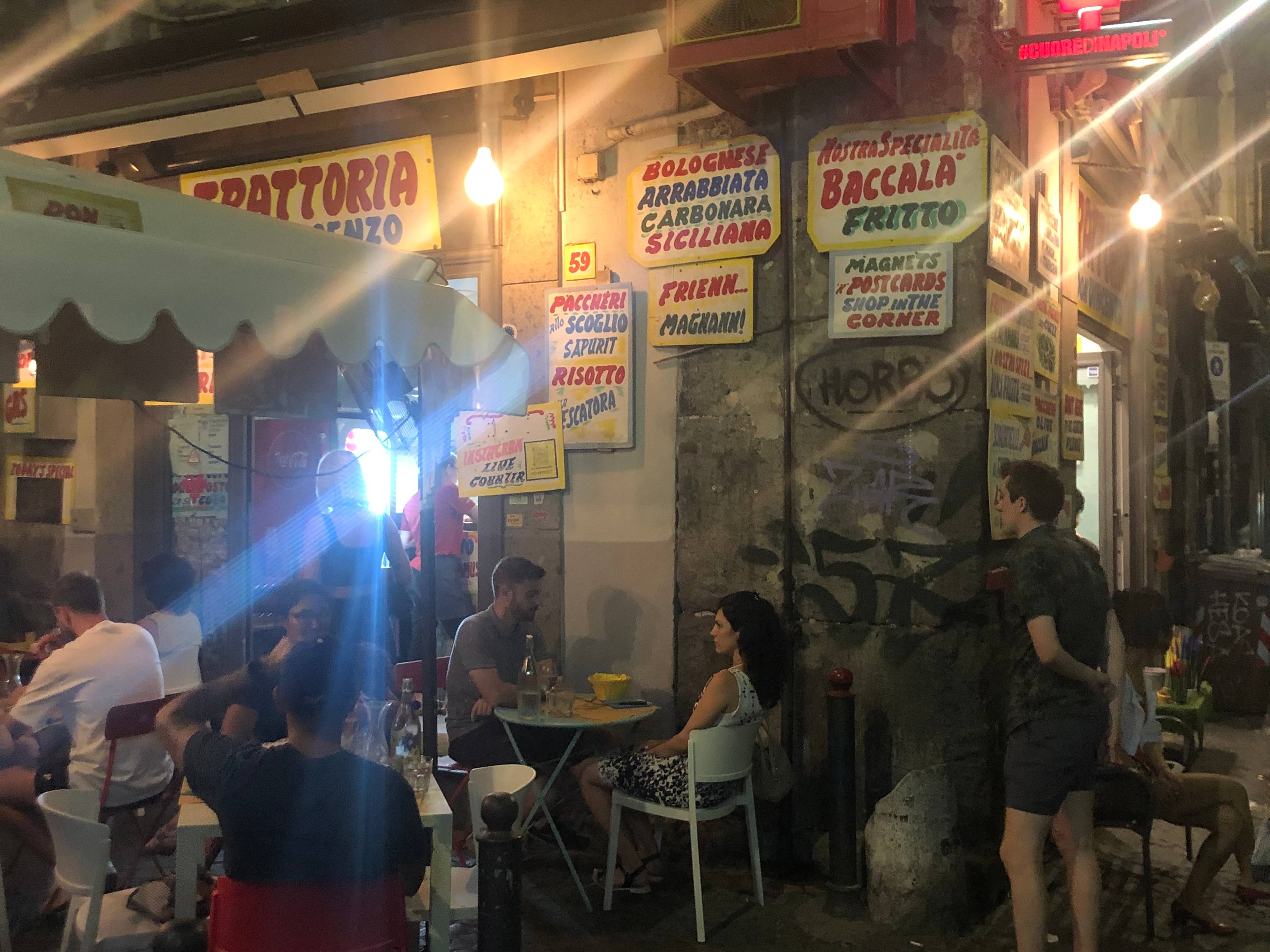 Na wszystkie tego typu dania zapraszam Was do Trattoria da Nennella, położonej w dzielnicy hiszpańskiej. Jest to restauracja, która może się poszczycić fenomenalnym jedzeniem, dobrymi cenami i atmosferą, jakiej nigdzie indziej nie znajdziecie. Codziennie w porze obiadowej zaczyna się impreza. Gra głośna muzyka, kelnerzy tańczą, szef coś pokrzykuje, tłuką się talerze, jednym słowem – dzieje się. Nic dziwnego, że są tu tłumy, więc przygotuj się na chwilę oczekiwania na stolik.