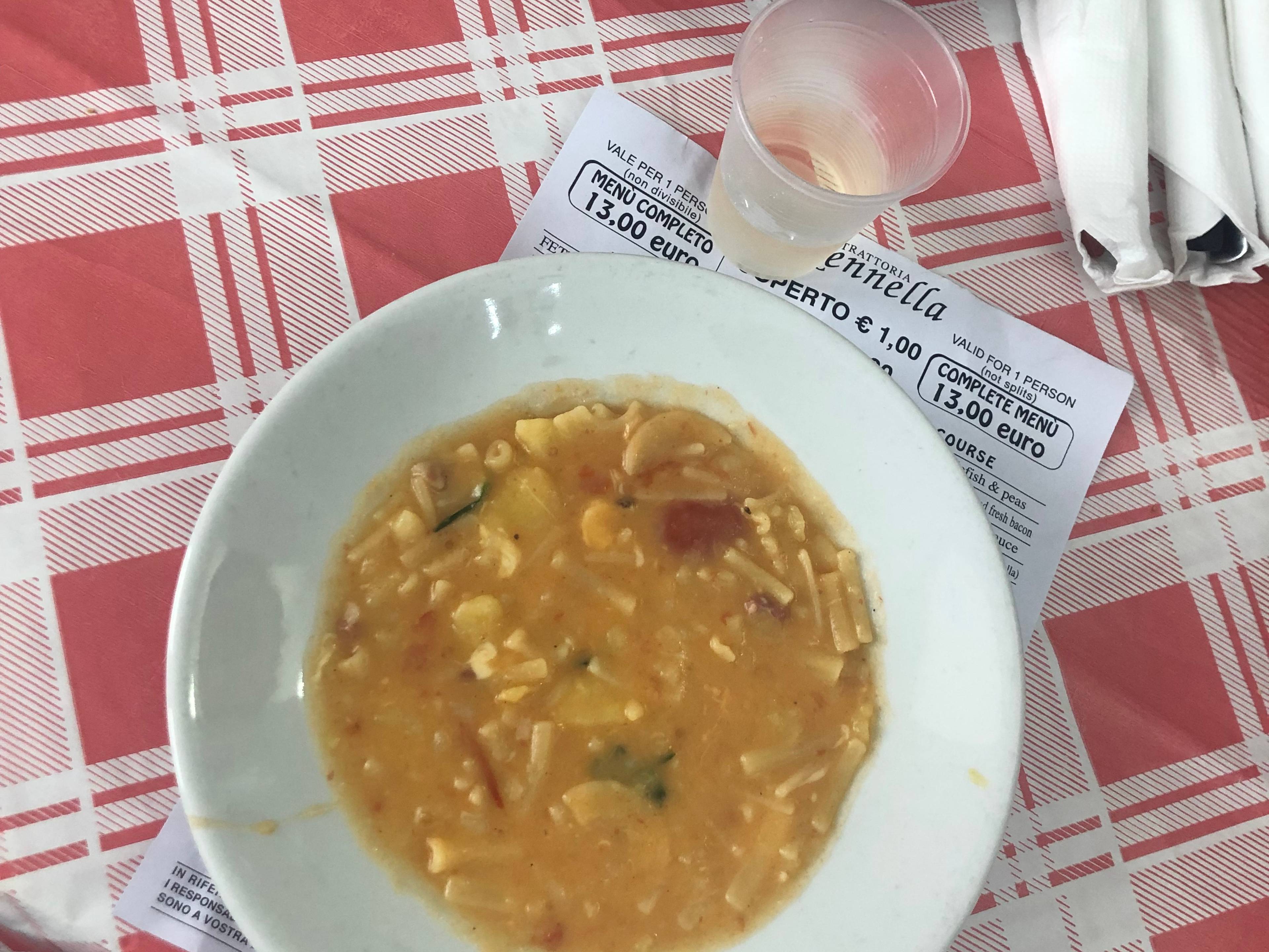 Kulinarnym zaskoczeniem było dla mnie typowo neapolitańskie danie: makaron z ziemniakami (pasta e patate). Nie mogłam sobie odmówić, więc spróbowałam i ku mojemu zdziwieniu było to naprawdę bardzo dobre. Nie oczekujcie wiele, mi na myśl przyszło skojarzenie „zupa z resztek”, z różnego rodzaju makaronami, ziemniakami, serem i boczkiem. Jednak jest to danie lokalne i naprawdę myślę, że warto go spróbować.