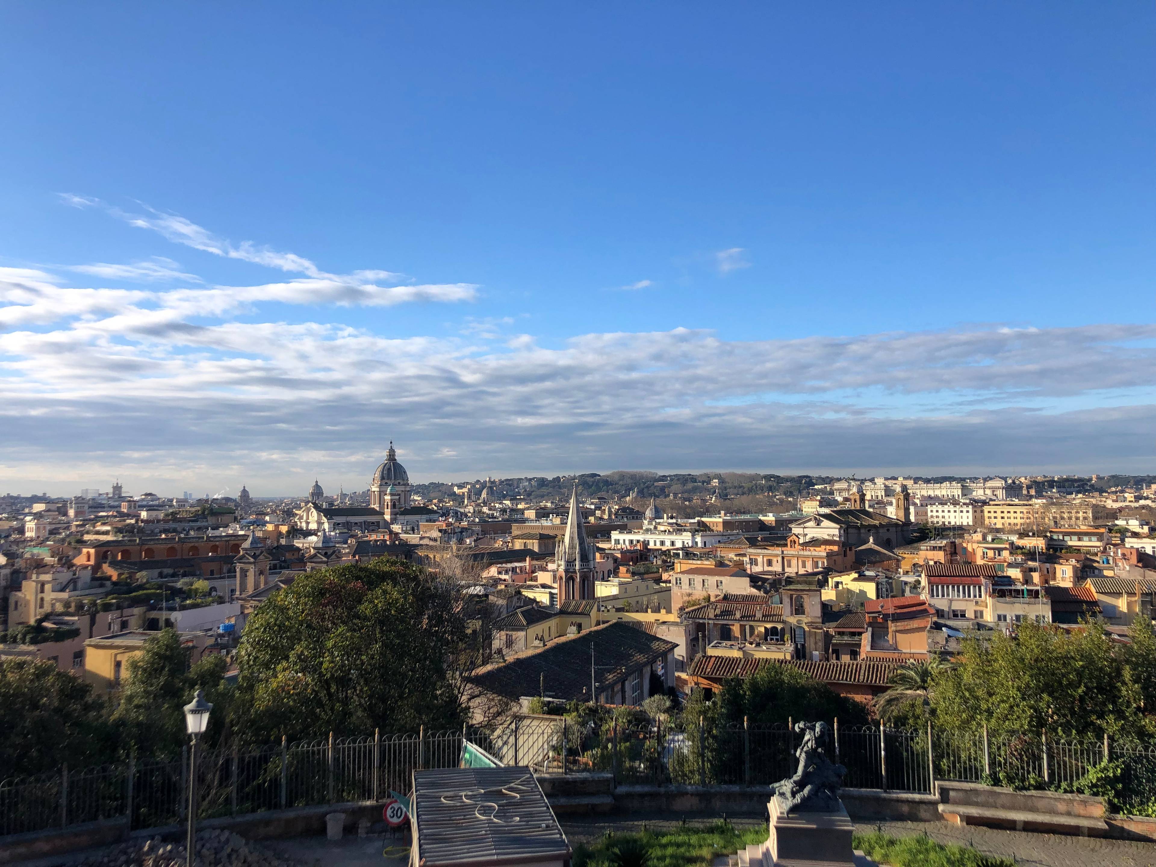 Do tego punktu widokowego możesz dojść na dwa sposoby – idąc promenadą od Schodów Hiszpańskich lub wdrapując się na górę przy placu Piazza del Popolo. Tam znajdziesz ładny park Pincio oraz taras, z którego możesz podziwiać panoramę na Rzym i Watykan.