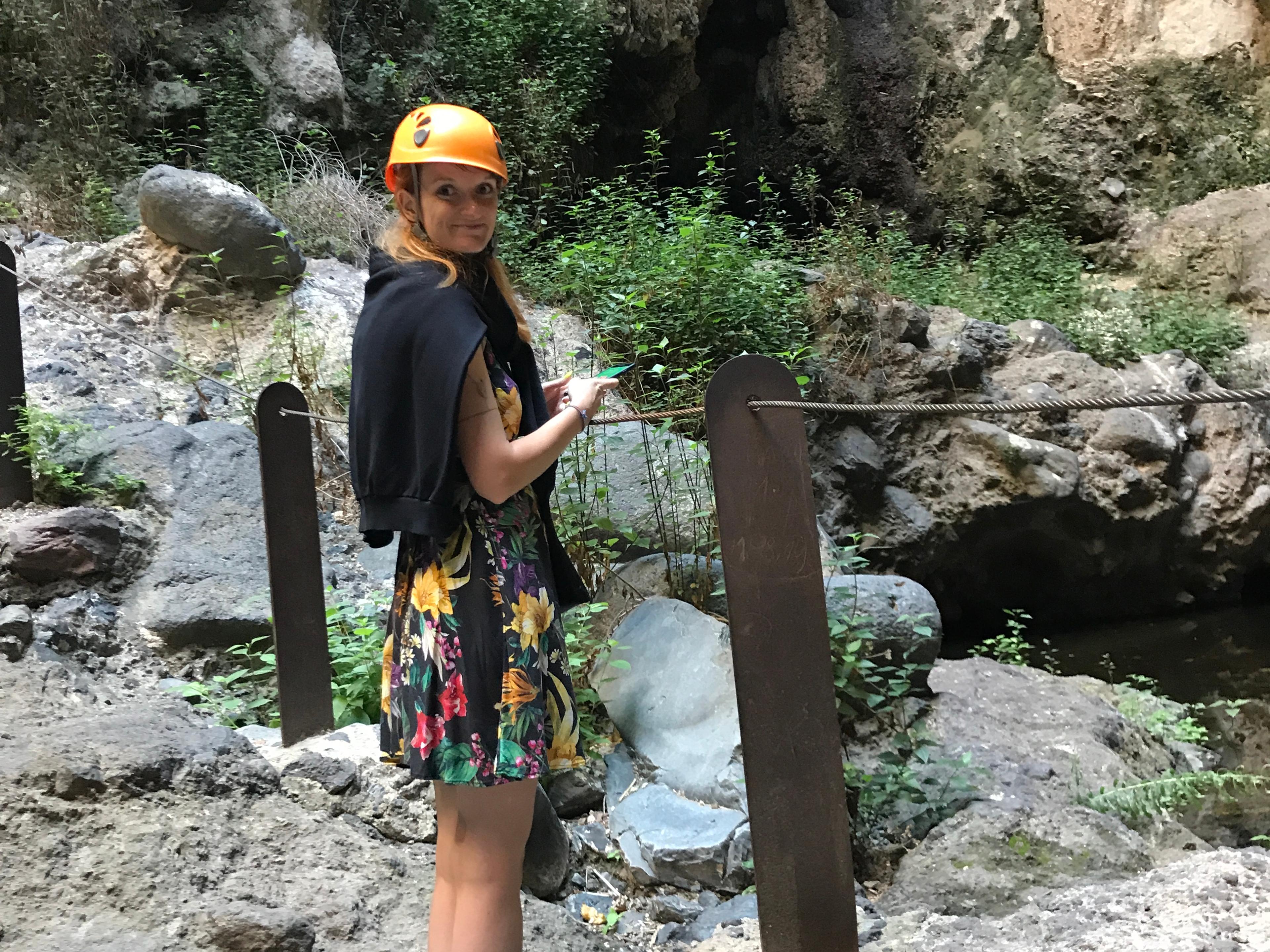 - Musisz mieć na głowie kask! Otrzymasz go od obsługi w cenie. Niestety zdarzył się tutaj wypadek, gdzie turystka zginęła po uderzeniu spadającą skałą, więc teraz wszystkie środki bezpieczeństwa są zaostrzone.